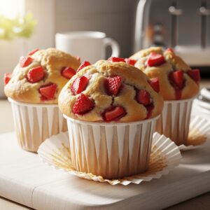 Fluffy muffins with fresh strawberries baked in every bite.