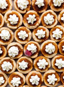 Mini Pumpkin Pies are bite-sized versions of the holiday favorite.