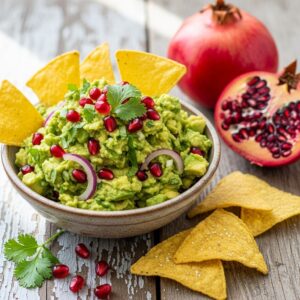 The pomegranates add sweetness and crunch that perfectly balance the creamy guacamole.
