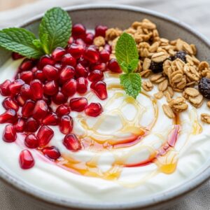 Combine Greek yogurt with fresh pomegranate arils, granola, and a drizzle of honey.