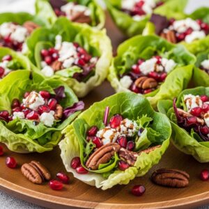 Turn a simple salad into a bite-sized snack by filling mini lettuce cups or endive leaves with spinach, feta, walnuts, and pomegranate seeds.