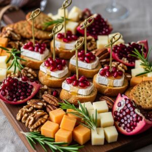 Create mini snack bites using cheese cubes, pomegranate seeds, and fresh herbs on toothpicks.
