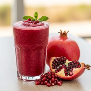 Blend pomegranate juice, banana, Greek yogurt, and a few frozen berries for a refreshing, vitamin-rich smoothie.