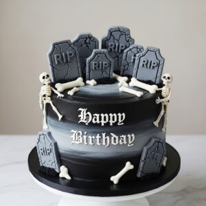 Add “Happy Birthday” written in white gothic script for that eerie finish.