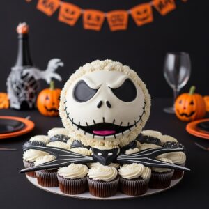 Arrange cupcakes in a circle and frost them together as one big Jack Skellington face.