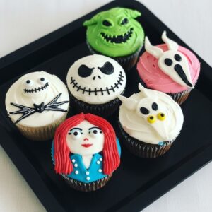 Bake a batch of cupcakes and top each one with a simple character design: Jack, Sally, Oogie Boogie, and Zero.