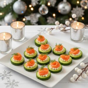 For a refreshing option, top cucumber rounds with cream cheese and smoked salmon.