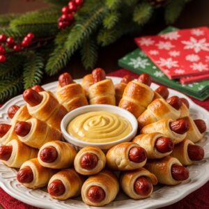 These bite-sized classics are always a hit! Wrap mini sausages in crescent roll dough, brush with egg wash, and bake until golden.