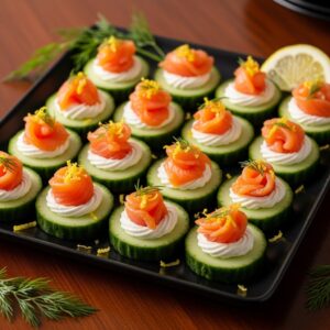 Light and refreshing, these cucumber rounds topped with smoked salmon and cream cheese are perfect for elegant gatherings.