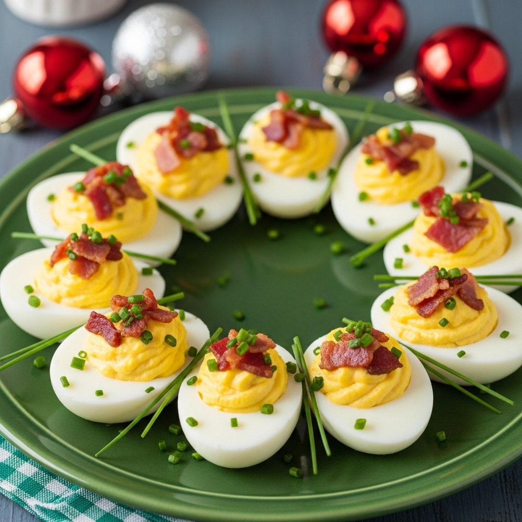 Classic deviled eggs made extra festive with paprika, chives, and a dash of Dijon mustard.