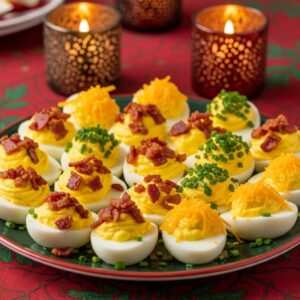 Give traditional deviled eggs a savory upgrade by mixing the yolk filling with crispy bacon bits, cheddar cheese, and a dash of smoked paprika.