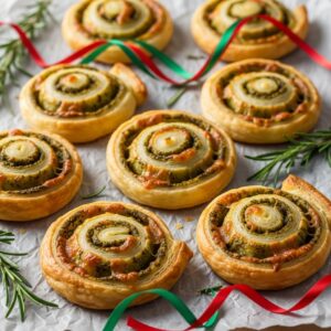 These elegant, spiral-shaped pastries are made with puff pastry spread with pesto and cheese, then baked until golden.