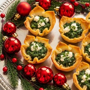 Crispy phyllo cups filled with a creamy blend of spinach, feta, and herbs make for a light yet savory appetizer.