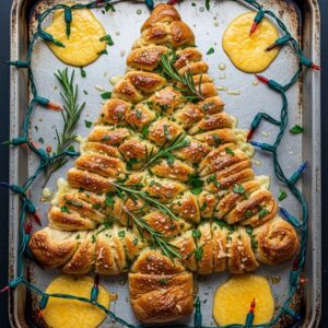 Shape balls of cheesy garlic dough into a Christmas tree and bake until golden brown.