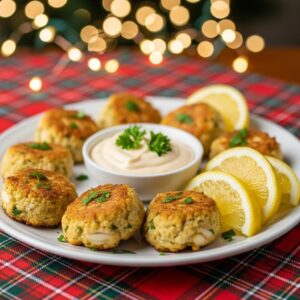 Crispy on the outside, tender and flavorful inside — mini crab cakes bring a touch of luxury to your Christmas appetizer table.