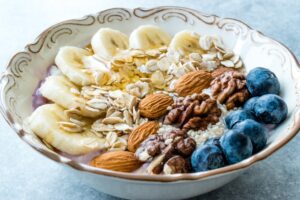 To keep it filling and nutritious, top it with almonds, walnuts, chia seeds, or flaxseeds.