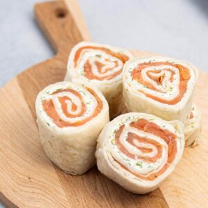 If you’re looking for something savory and elegant, smoked salmon roll-ups are a great choice.