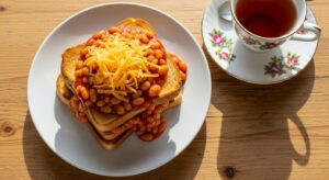 Beans on Toast is the ultimate quick British breakfast. The beans are usually slow-cooked in a rich tomato sauce, then spooned generously over slices of warm, buttered toast.