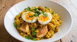 Made from flaked smoked haddock, rice, hard-boiled eggs, curry powder, and fresh parsley, it’s aromatic and filling.