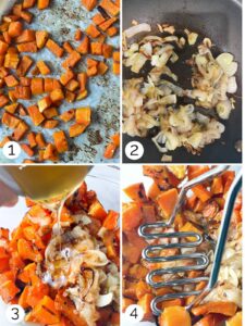 Make the topping – Stir apple juice, honey, and vinegar together, then mix into the roasted squash. Lightly mash with a potato masher until combined.
