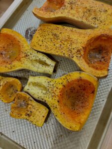 - I start by roasting the butternut squash.