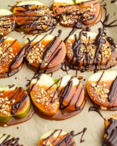 Caramel apple slices are my go-to fall treat because they’re easy, fun, and so much less messy than a whole caramel apple.