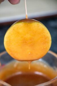 4. Dip each apple slice into the melted caramel, letting the excess drip off.