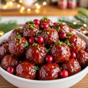 Tender meatballs coated in a sweet and tangy cranberry glaze — simple and so flavorful.