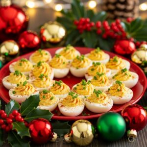 A timeless favorite — creamy, tangy deviled eggs with a sprinkle of paprika for holiday color.