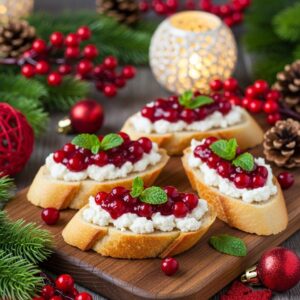 Sweet cranberry relish meets tangy goat cheese on crispy bread — a perfect festive bite.