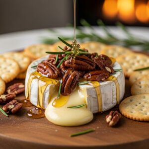 Warm brie topped with honey and crunchy nuts — an elegant appetizer ready in minutes.