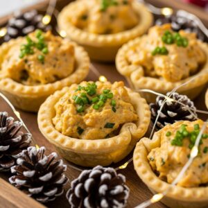 Creamy, savory chicken filling baked in mini tart shells — comforting and bite-sized.