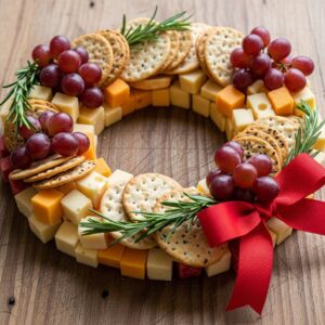 A fun and festive way to serve cheese and crackers in a holiday wreath shape!
