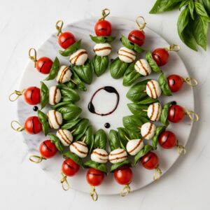 Bright, fresh, and festive with red tomatoes, white mozzarella, and green basil — the colors of Christmas!