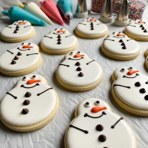 Each cookie becomes its own little snowman creation — a fun edible craft for the whole family.