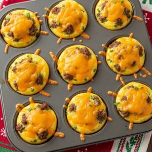Combine scrambled eggs, sausage, and cheese in a muffin tin for an easy, portable meal.