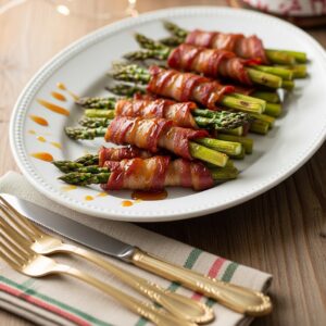 Add a savory touch to your spread with bacon-wrapped asparagus.