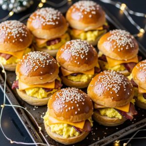Use small rolls and layer scrambled eggs, bacon, sausage, and cheese.