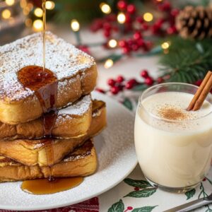Serve it with powdered sugar, maple syrup, and a sprinkle of nutmeg for a comforting and festive dish.