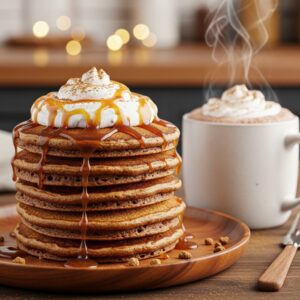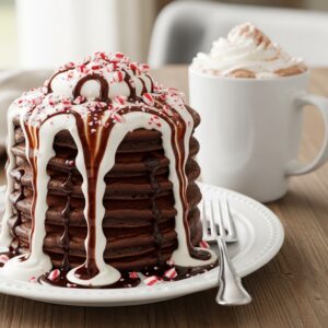 Combine two holiday favorites — hot chocolate and pancakes — into one indulgent dish.