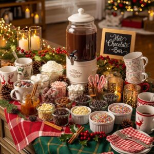 Offer marshmallows, whipped cream, crushed candy canes, chocolate shavings, and flavored syrups so everyone can customize their cup.