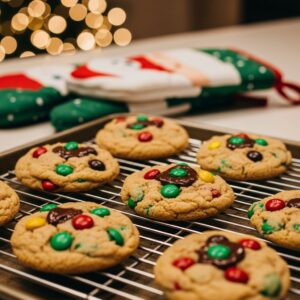 Colorful and cheerful, these cookies feature red and green M&Ms baked into soft dough.