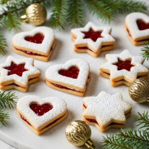 The cut-out tops — stars or hearts — give them a snowy window effect, making them perfect for elegant Christmas dessert tables.