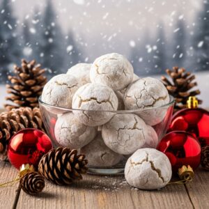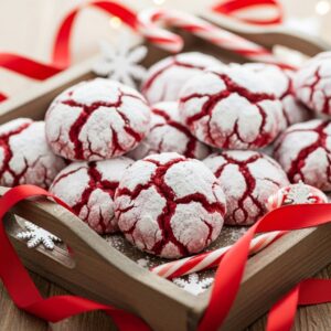 These vibrant red cookies, rolled in powdered sugar before baking, crackle beautifully in the oven.