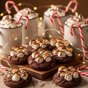 Soft chocolate cookies topped with gooey marshmallows and a drizzle of melted chocolate taste just like your favorite winter drink.