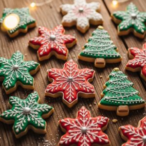 Shape them into gingerbread men, reindeer, or snowflakes, and decorate with white icing details.
