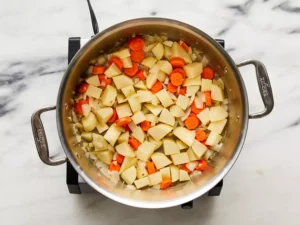 - Sauté: Heat olive oil or butter in a large pot over medium heat. Add onion and garlic, cooking for 3–4 minutes until soft.