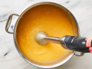 If you don’t have one, carefully transfer the soup to a blender in batches, then return it to the pot.