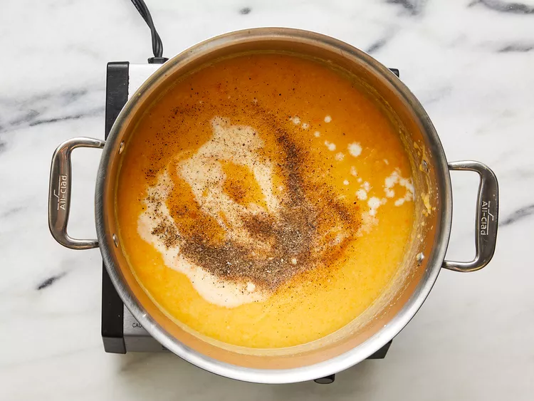 - Blend: Use an immersion blender to puree until smooth. (Or carefully blend in batches using a blender.)