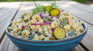 If you’re looking to break free from boring side dishes, this dill pickle pasta salad delivers on flavor, texture, and satisfaction.